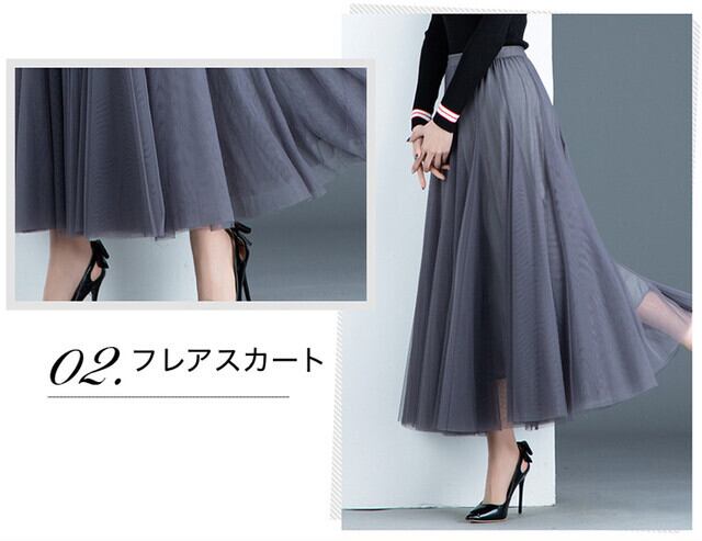 チュールミモレ丈スカート