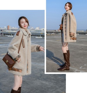 【送料無料】レディース ダイス柄 ジッパー スエード 膝上 折り襟 ボアジャケット 大人可愛い ママコーデ ママファッション 韓国 オルチャンファッション 人気 トレンド 新作 20代 30代 40代 きれいめ レトロ シンプル 無地 定番 お出かけ デート おしゃれ 通勤 通学 オフィス OL デイリー 普段着 ラフ カジュアル フェミニン シック ゆったり 体型カバー 着痩せ 着回し インスタ映え 秋 冬 CO1492