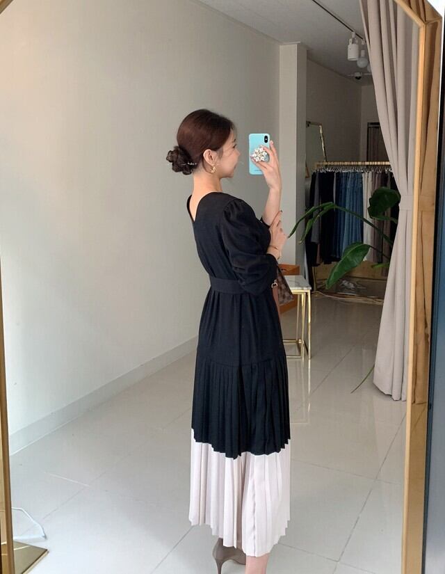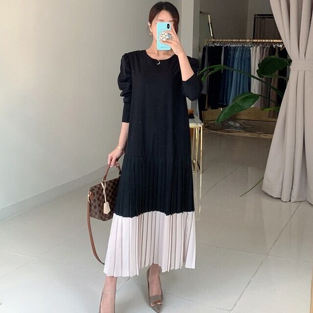 【送料無料】レディース バイカラープリーツワンピース ラウンドネック ルーズ タイウエスト ワンピース プリーツドレス ロングスカート シック エレガント 2カラー 大人可愛い ママコーデ ママファッション 韓国 オルチャンファッション 20代 30代 40代 おしゃれ ラフ シンプル デート 通学 学生 きれいめ ルーズ 秋 冬 春 夏 人気 女子力 おしゃれ セレブカジュアル ファッション 通勤 女子会 オフィス シック 着回し 流行 インスタ映え かっこいい こなれ感 CO1070