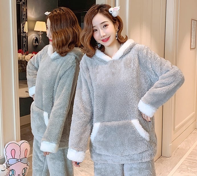 【送料無料】レディース プルオーバーフード付きウサギ アニマル柄 切り替え上下セットパジャマ ルームウェア 大人可愛い ママコーデ ママファッション 韓国 オルチャンファッション 人気 トレンド 新作 20代 30代 40代 セットアップ 2点セット 2ピース ツーピース 部屋着 寝巻き おうち時間 家着 ステイホーム おしゃれ カジュアル 可愛い シンプル 無地 ゆったり デイリー 普段使い もこもこ ふわふわ あったか 秋 冬 CO1546