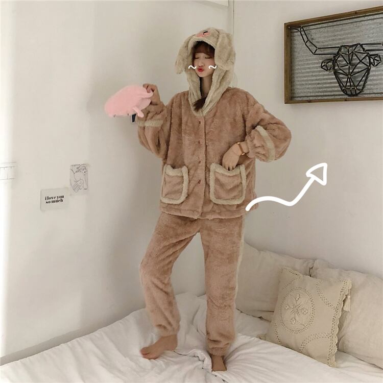 フードの長いお耳がとってもキュートなルームウェア上下セット。