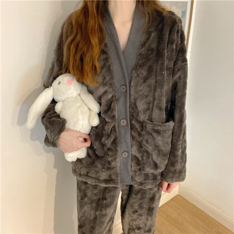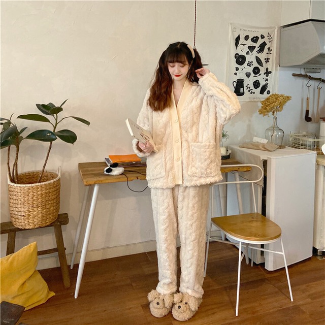 【送料無料】レディース もこもこパジャマ シンプル Vネック ゆったり ルームウェア おうち時間 大人可愛い ママコーデ ママファッション 韓国 オルチャンファッション 人気 トレンド 新作 20代 30代 40代 セットアップ 2点セット 2ピース ツーピース 上下セット 部屋着 寝巻き 家着 ステイホーム おしゃれ カジュアル 可愛い シンプル 無地 ゆったり デイリー 普段使い もこもこ ふわふわ あったか 秋 冬 CO1560