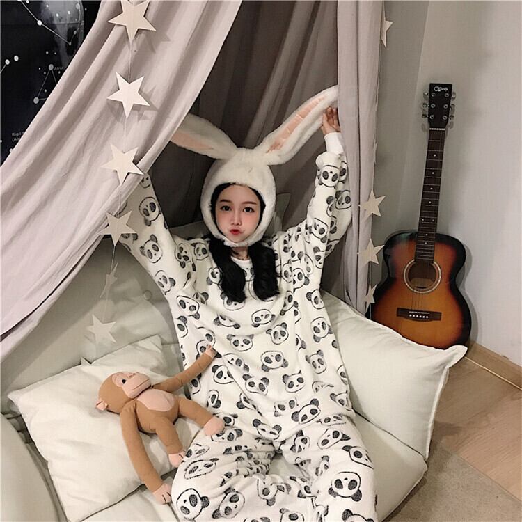 【送料無料】レディース パンダプリントが可愛い ルームウエア セットアップ パジャマ 楽チン 可愛い ふわふわ 大人可愛い ママコーデ ママファッション 韓国 オルチャンファッション 人気 トレンド 新作 20代 30代 40代 2点セット 2ピース ツーピース 上下セット 部屋着 寝巻き おうち時間 家着 ステイホーム おしゃれ カジュアル 可愛い シンプル 無地 ゆったり デイリー 普段使い もこもこ ふわふわ あったか 秋 冬 CO1563
