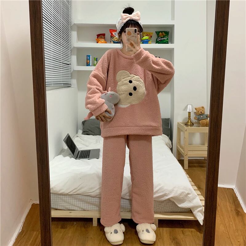 【送料無料】レディース くまがアクセント もこもこルームウエア セットアップ パジャマ 可愛い キュート お家時間 大人可愛い ママコーデ ママファッション 韓国 オルチャンファッション 人気 トレンド 新作 20代 30代 40代 2点セット 2ピース ツーピース 上下セット 部屋着 寝巻き おうち時間 家着 ステイホーム おしゃれ カジュアル 可愛い シンプル 無地 ゆったり デイリー 普段使い もこもこ ふわふわ あったか 秋 冬 CO1565
