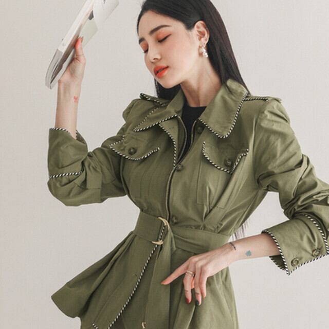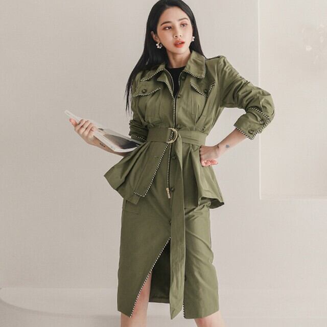 【送料無料】レディース 【セットアップ】長袖 ショート トレンチジャケット ハイウエストスカート アーミーグリーン ツーピース 大人可愛い ママコーデ ママファッション 韓国 オルチャンファッション 人気 トレンド 新作 20代 30代 40代 きれいめ レトロ シンプル 定番 スタイリッシュ お出かけ デート おしゃれ 通勤 通学 オフィス OL デイリー 普段着 ラフ カジュアル フェミニン シック 体型カバー 着痩せ 着回し インスタ映え 秋 冬 CO1714