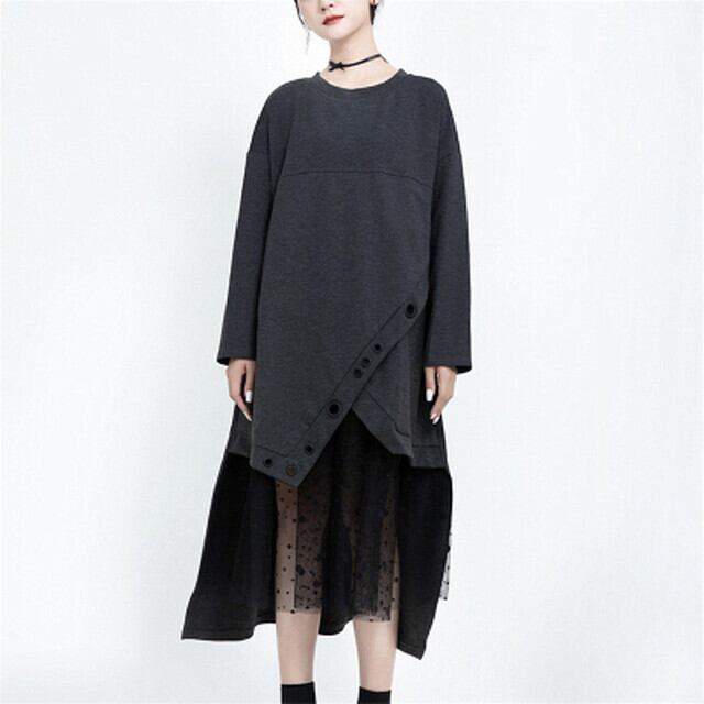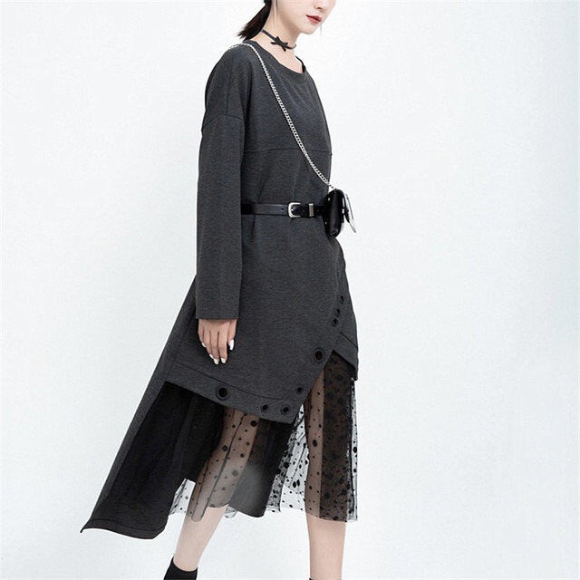 【送料無料】レディース メッシュステッチワンピース Aライン イレギュラースカート ルーズ メッシュ モード系 ストリート系 ブラックコーデ 大人可愛い ママコーデ ママファッション 韓国 オルチャンファッション 人気 トレンド 新作 20代 30代 40代 きれいめ レトロ シンプル 定番 スタイリッシュ お出かけ デート おしゃれ 通勤 通学 オフィス OL デイリー 普段着 ラフ カジュアル フェミニン シック 体型カバー 着痩せ 着回し インスタ映え 秋 冬 春 CO1720
