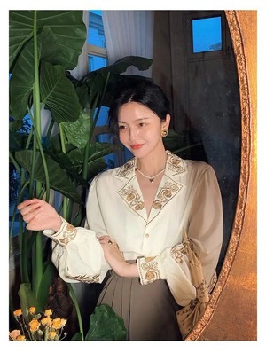 ゴールド刺繍が綺麗な刺繍ブラウス