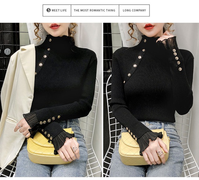 【送料無料】レディース ニット ハイネックシック Tシャツ ボトミングシャツ ゴールドボタン 長袖ニット スリム 5カラー 大人可愛い ママコーデ ママファッション 韓国 オルチャンファッション 人気 トレンド 新作 20代 30代 40代 きれいめ レトロ シンプル 定番 スタイリッシュ お出かけ デート おしゃれ 通勤 通学 オフィス OL デイリー 普段着 ラフ カジュアル フェミニン シック 体型カバー 着痩せ 着回し インスタ映え 秋 冬 春 CO1727