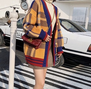 【送料無料】レディース カーディガン チェック オーバーデザイン アウター レッド イエロー 大人可愛い ママコーデ ママファッション 韓国 オルチャンファッション 人気 トレンド 新作 20代 30代 40代 きれいめ レトロ シンプル 無地 定番 お出かけ デート おしゃれ 通勤 通学 オフィス OL デイリー 普段着 ラフ カジュアル フェミニン シック ゆったり 体型カバー 着痩せ 着回し インスタ映え 秋 冬 春 CO1592