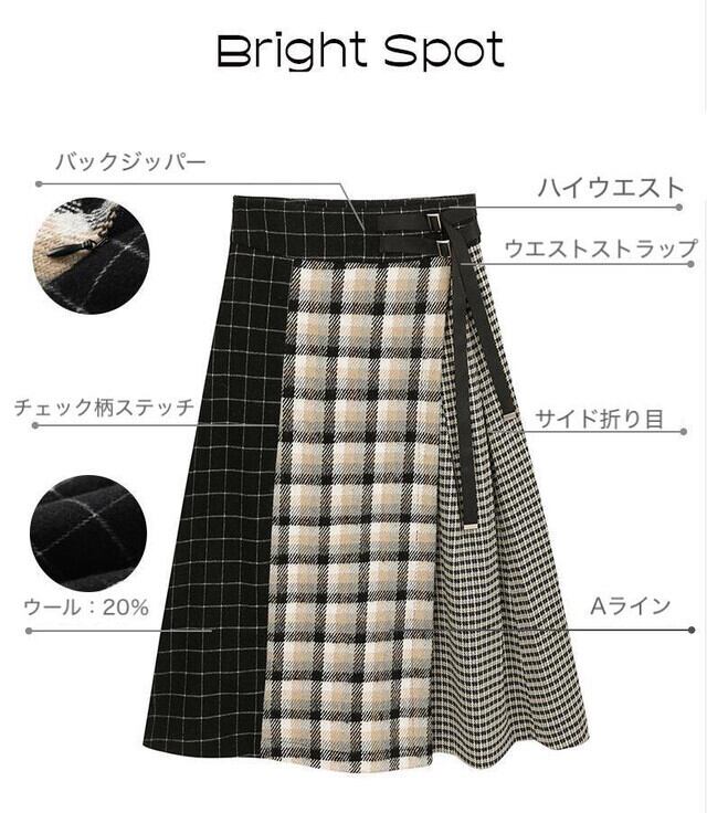 3種類のチェック柄が綺麗なAラインチェック柄スカート