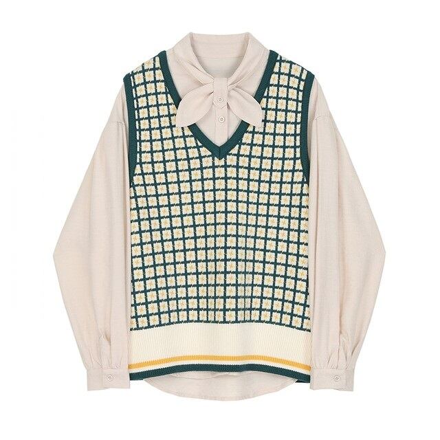 【送料無料】レディース 【セット】長袖リボンシャツ チェックニットベスト カジュアル ツーピース モード系 大人可愛い ママコーデ ママファッション 韓国 オルチャンファッション 人気 トレンド 新作 20代 30代 40代 きれいめ レトロ シンプル 定番 スタイリッシュ お出かけ デート おしゃれ 通勤 通学 オフィス OL デイリー 普段着 ラフ カジュアル フェミニン シック 体型カバー 着痩せ 着回し インスタ映え 秋 冬 春 CO1746