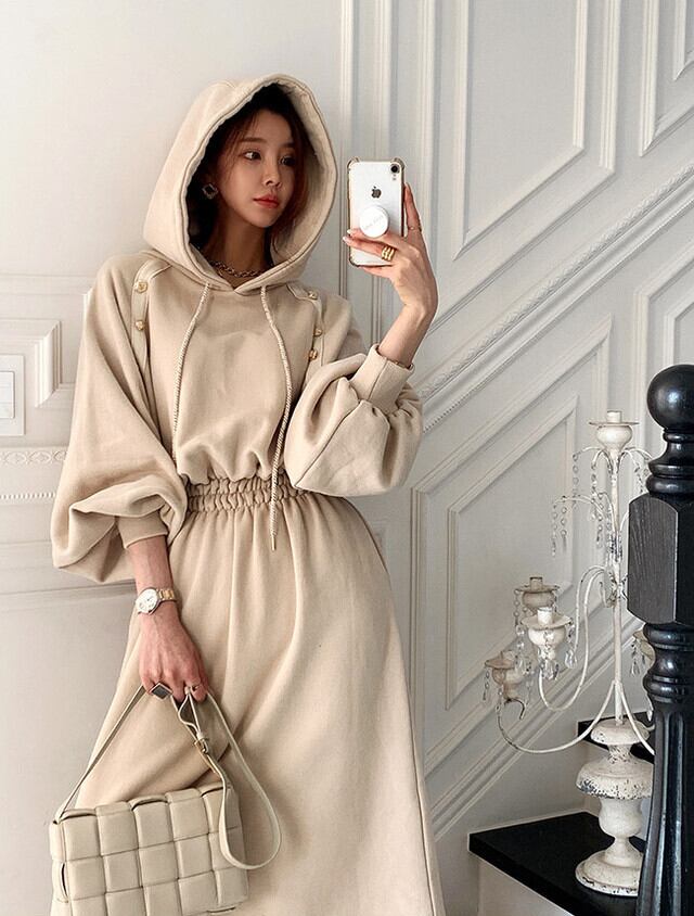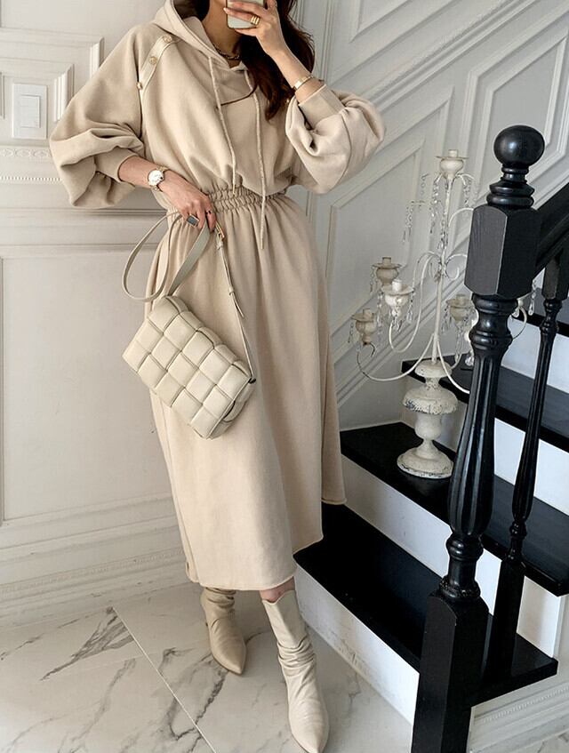 【送料無料】レディース スウェットワンピース フード ハイウエスト ゴールドボタン 2カラー 大人可愛い ママコーデ ママファッション 韓国 オルチャンファッション 人気 トレンド 新作 20代 30代 40代 きれいめ レトロ シンプル 定番 スタイリッシュ お出かけ デート おしゃれ 通勤 通学 オフィス OL デイリー 普段着 ラフ カジュアル フェミニン シック 体型カバー 着痩せ 着回し インスタ映え 秋 冬 春 CO1753