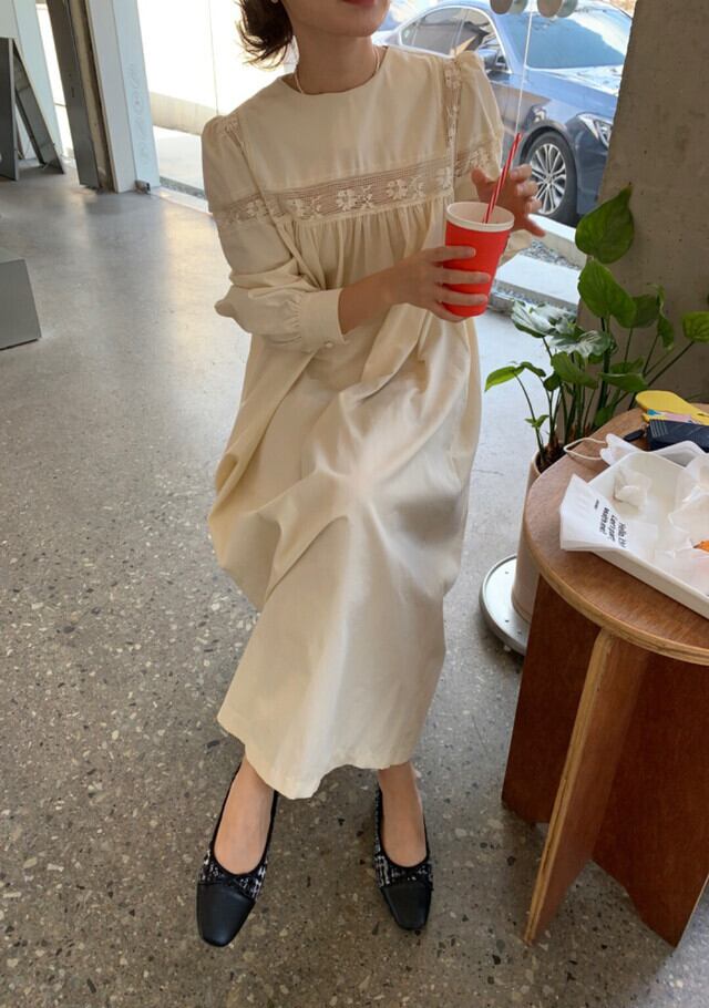 【送料無料】レディース ワンピース かぎ針編み レース ラウンドネック バックシングルブレスト フリル パフスリーブ ドレス 2カラー ルーズウエスト 大人可愛い ママコーデ ママファッション 韓国 オルチャンファッション 人気 トレンド 新作 20代 30代 40代 きれいめ レトロ シンプル 定番 スタイリッシュ お出かけ デート おしゃれ 通勤 通学 オフィス OL デイリー 普段着 ラフ カジュアル フェミニン シック 体型カバー 着痩せ 着回し インスタ映え 秋 春 CO1761