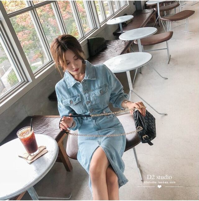 【送料無料】レディース デニムワンピース バックオープン ウエストスリミング ミドル丈 長袖 オーバーザニー セクシー 大人可愛い ママコーデ ママファッション 韓国 オルチャンファッション 人気 トレンド 新作 20代 30代 40代 きれいめ レトロ シンプル 定番 スタイリッシュ お出かけ デート おしゃれ 通勤 通学 オフィス OL デイリー 普段着 ラフ カジュアル フェミニン シック 体型カバー 着痩せ 着回し インスタ映え 秋 冬 春 CO1780