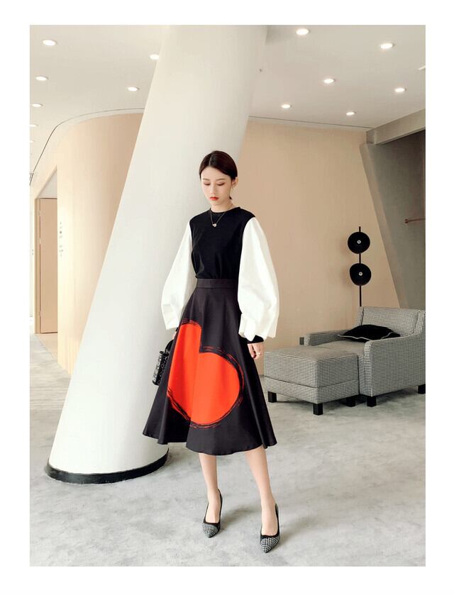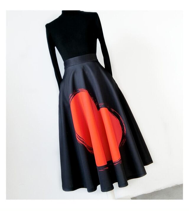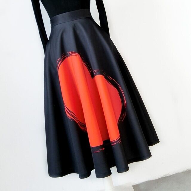 中央に大きなハート柄が描かれたフレアAラインスカート