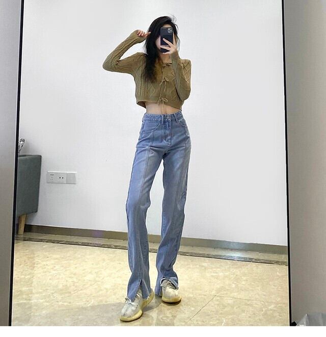 【送料無料】レディース ジーンズ デニム ハイウエスト スリム ルーズ パンツ ワイルドスプリット 大人可愛い ママコーデ ママファッション 韓国 オルチャンファッション 人気 トレンド 新作 20代 30代 40代 きれいめ レトロ シンプル 定番 スタイリッシュ お出かけ デート おしゃれ 通勤 通学 オフィス OL デイリー 普段着 ラフ カジュアル 体型カバー 着痩せ 着回し インスタ映え 秋 冬 春 CO1790