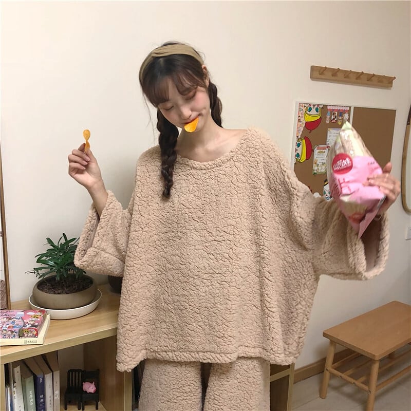 【送料無料】レディース もこもこ 秋冬 パジャマ 寝巻き 部屋着 ホームウェア 上下セット モコモコ 大きめ ゆったり ビッグサイズ 大人可愛い ママコーデ ママファッション 韓国 オルチャンファッション 人気 トレンド 新作 20代 30代 40代 パジャマ ルームウェア セットアップ 2点セット 2ピース ツーピース 上下セット 部屋着 寝巻き おうち時間 家着 ステイホーム おしゃれ カジュアル 可愛い シンプル 無地 ゆったり デイリー 普段使い もこもこ ふわふわ あったか CO1618