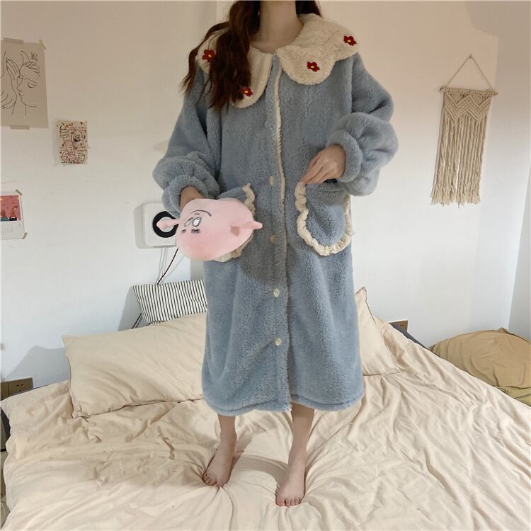 【送料無料】レディース 3色 モコモコ ルームウェア もこもこ かわいい ガウン ワンピース パジャマ 秋 冬 寝巻き 部屋着 ホームウェア 花柄 ラブリー ガーリー ピンク 紫 青 前開き 襟 レトロ フリース インスタ映え 大人可愛い ママコーデ ママファッション 韓国 オルチャンファッション 人気 トレンド 新作 20代 30代 40代 部屋着 寝巻き おうち時間 家着 ステイホーム おしゃれ カジュアル 可愛い シンプル 無地 ゆったり デイリー 普段使い ふわふわ あったか CO1623