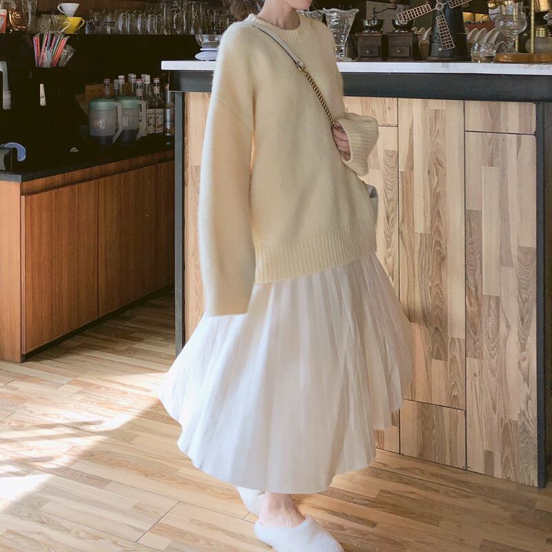 シンプルでミニマムな雰囲気に仕上げモヘアニット。