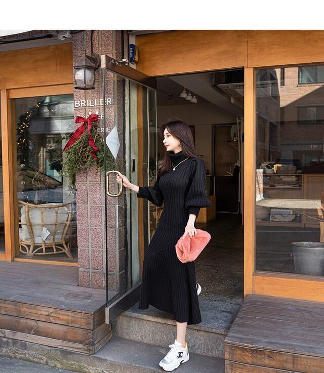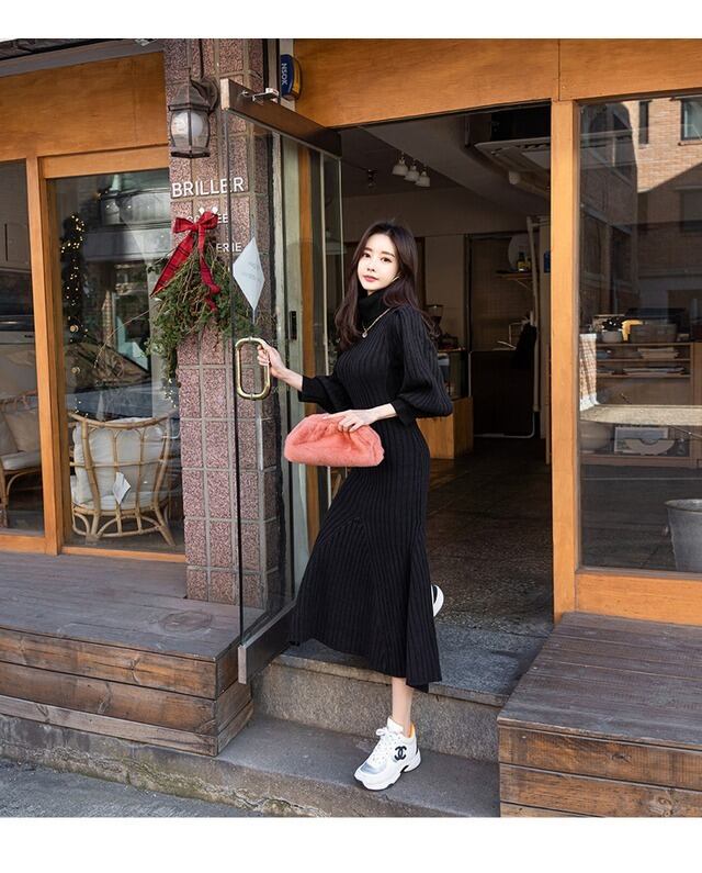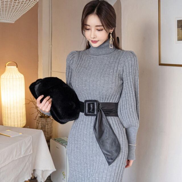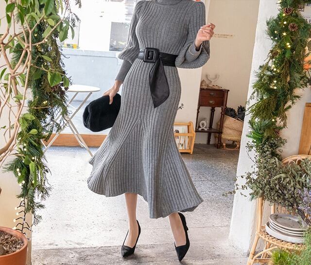 【送料無料】レディース 【ベルト付き】ハイネック ニットワンピース ランタンスリーブ スリムニットドレス セーター フィッシュテールスカート マキシ丈 2カラー 大人可愛い ママコーデ ママファッション 韓国 オルチャンファッション 人気 トレンド 新作 20代 30代 40代 きれいめ レトロ シンプル 定番 スタイリッシュ お出かけ デート おしゃれ 通勤 通学 オフィス OL デイリー 普段着 ラフ カジュアル フェミニン シック 体型カバー 着痩せ 着回し インスタ映え 秋 冬 春 CO1807