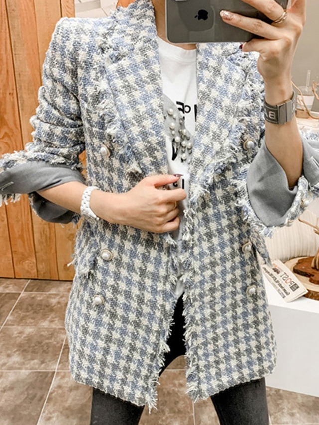 【送料無料】レディース 千鳥格子 ジャケット ブレザー ツイード柄 フリンジ ミドル丈 2カラー 大人可愛い ママコーデ ママファッション 韓国 オルチャンファッション 人気 トレンド 新作 20代 30代 40代 きれいめ レトロ シンプル 定番 スタイリッシュ お出かけ デート おしゃれ 通勤 通学 オフィス OL デイリー 普段着 ラフ カジュアル フェミニン シック 体型カバー 着痩せ 着回し インスタ映え 秋 冬 春 CO1812