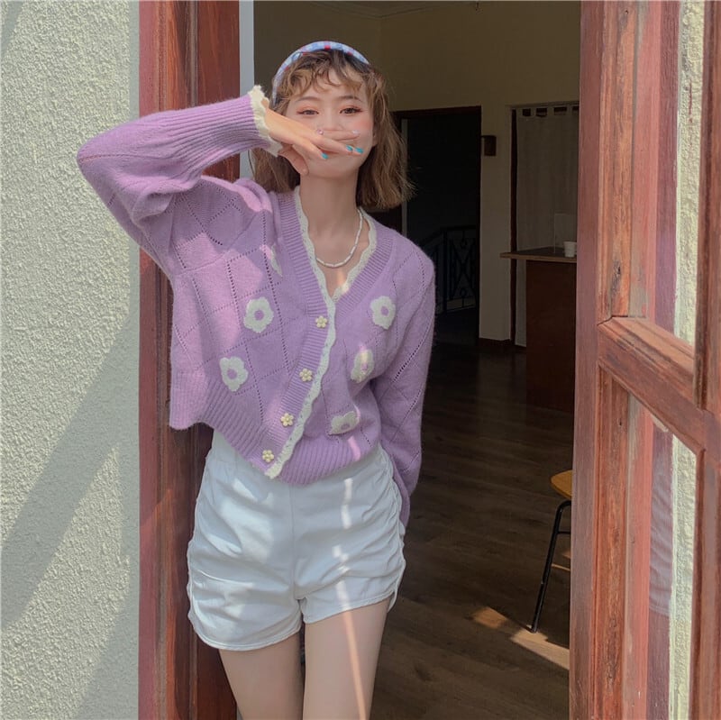 ♡レトロなフラワーモチーフが目を引くカーディガン♡