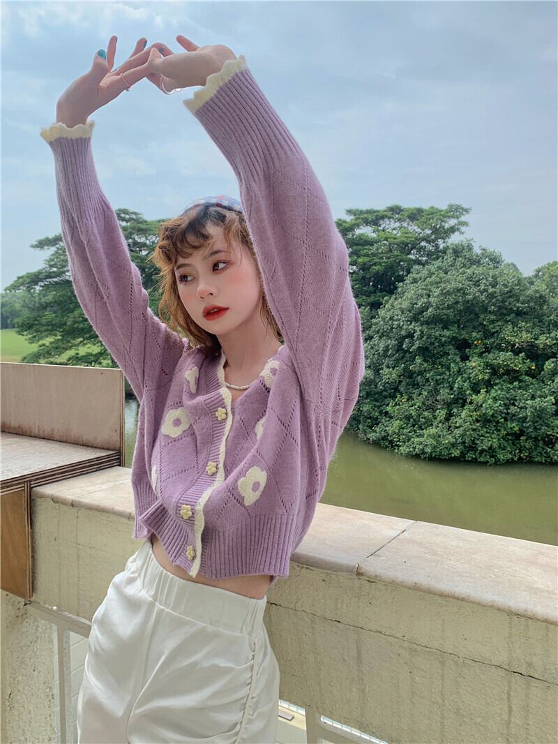 【送料無料】レディース 花柄 カーディガン ショート丈 2色 大人可愛い ママコーデ ママファッション 韓国 オルチャンファッション 人気 トレンド 新作 20代 30代 40代 きれいめ レトロ シンプル 無地 定番 お出かけ デート おしゃれ 通勤 通学 オフィス OL デイリー 普段着 ラフ カジュアル フェミニン シック ゆったり 体型カバー 着痩せ 着回し インスタ映え 秋 春 CO1698