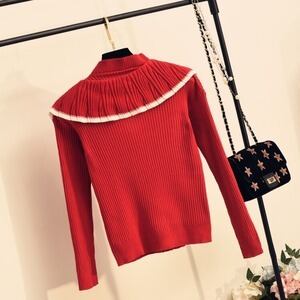 正面も後ろ姿も可愛いらしい、フェミニンなリブ編みカーディガンです。