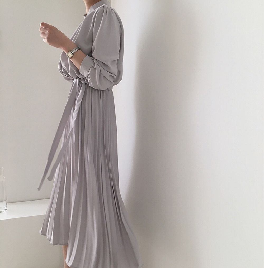 【送料無料】レディース スタンドカラー プリーツワンピース ミモレ丈 ミドル丈 長袖 3カラー ハイネック ウエストマーク Aライン プリーツ加工 大人可愛い ママコーデ ママファッション 韓国 オルチャンファッション 人気 トレンド 新作 20代 30代 40代 きれいめ レトロ シンプル 定番 スタイリッシュ お出かけ デート おしゃれ 通勤 通学 オフィス OL デイリー 普段着 ラフ カジュアル フェミニン シック 体型カバー 着痩せ 着回し インスタ映え 秋 冬 春 CO1842