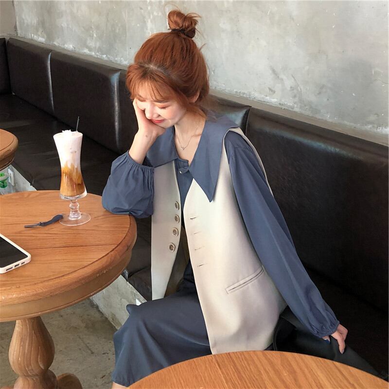 【送料無料】レディース 2点セット ワンピース セット ベスト シャツ セットアップ ツーピース ミモレ丈 ロング 長袖 ゆったり 大きいサイズ 大人可愛い ママコーデ ママファッション 韓国 オルチャンファッション 人気 トレンド 新作 20代 30代 40代 きれいめ レトロ シンプル 定番 スタイリッシュ お出かけ デート おしゃれ 通勤 通学 オフィス OL デイリー 普段着 ラフ カジュアル フェミニン シック 体型カバー 着痩せ 着回し インスタ映え 秋 冬 春 CO1847