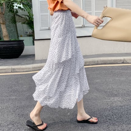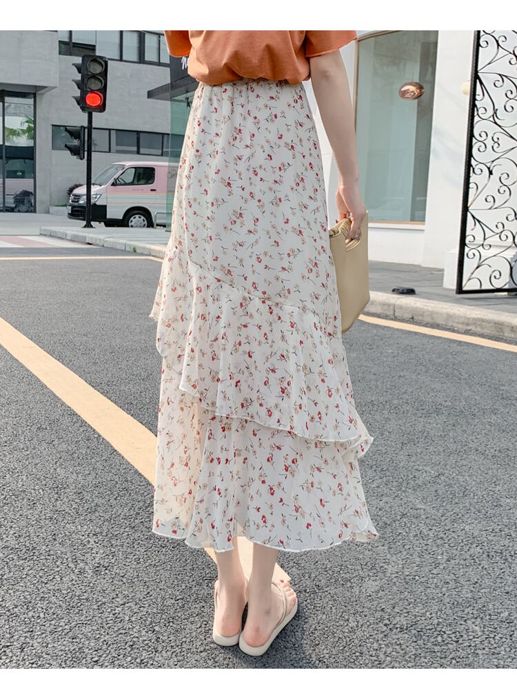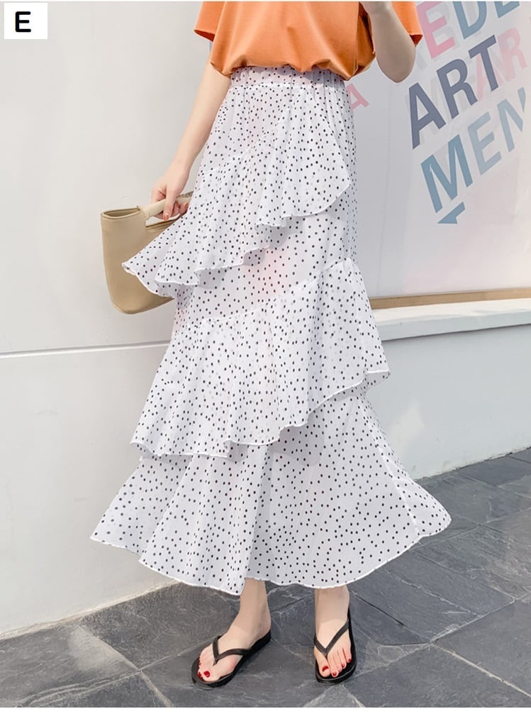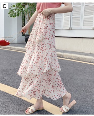 【送料無料】レディースティアード シフォン スカート 5カラー ハイウエスト ロング丈 ミモレ丈 イレギュラー フリル シフォンスカート 総柄 花柄 ウエストゴム 大人可愛い ママコーデ ママファッション 韓国 オルチャンファッション 人気 トレンド 新作 20代 30代 40代 きれいめ レトロ シンプル 定番 スタイリッシュ お出かけ デート おしゃれ 通勤 通学 オフィス OL デイリー 普段着 ラフ カジュアル フェミニン シック 体型カバー 着痩せ 着回し インスタ映え 秋 春 夏 CO1865