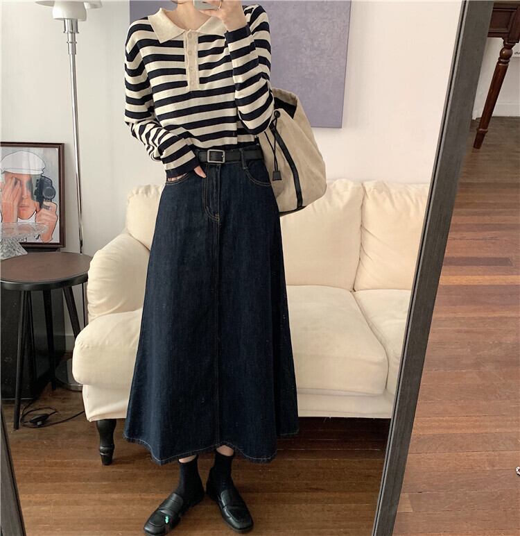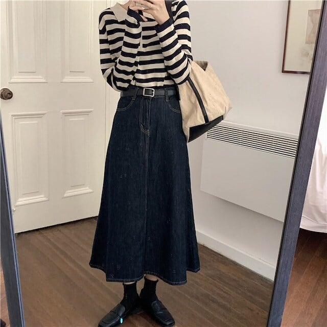 【送料無料】レディース Aライン ミドル丈 デニム スカート ロング丈 ハイウエスト デニム ジーンズ 大人可愛い ママコーデ ママファッション 韓国 オルチャンファッション 人気 トレンド 新作 20代 30代 40代 きれいめ レトロ シンプル 定番 スタイリッシュ お出かけ デート おしゃれ 通勤 通学 オフィス OL デイリー 普段着 ラフ カジュアル フェミニン シック 体型カバー 着痩せ 着回し インスタ映え 秋 冬 春 夏 CO1869