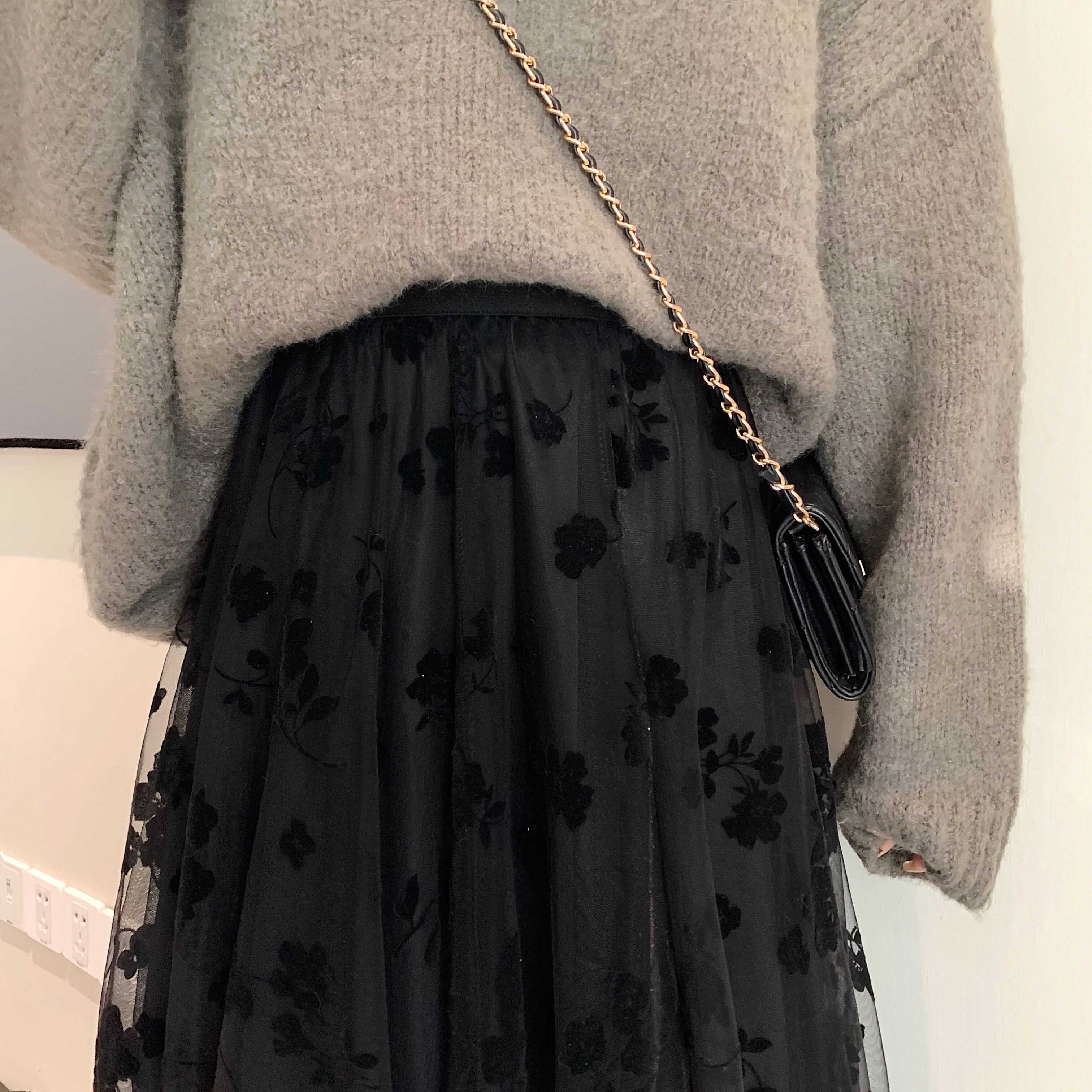 【送料無料】レディース ブラックフラワー チュール スカート ロング ハイウエスト ウエストゴム Aライン フレア ミモレ丈 ロング丈 花柄 刺繍 ふんわり 大人可愛い ママコーデ ママファッション 韓国 オルチャンファッション 人気 トレンド 新作 20代 30代 40代 きれいめ レトロ シンプル 定番 スタイリッシュ お出かけ デート おしゃれ 通勤 通学 オフィス OL デイリー 普段着 ラフ カジュアル フェミニン シック 体型カバー 着痩せ 着回し インスタ映え 秋 春 夏 CO1878