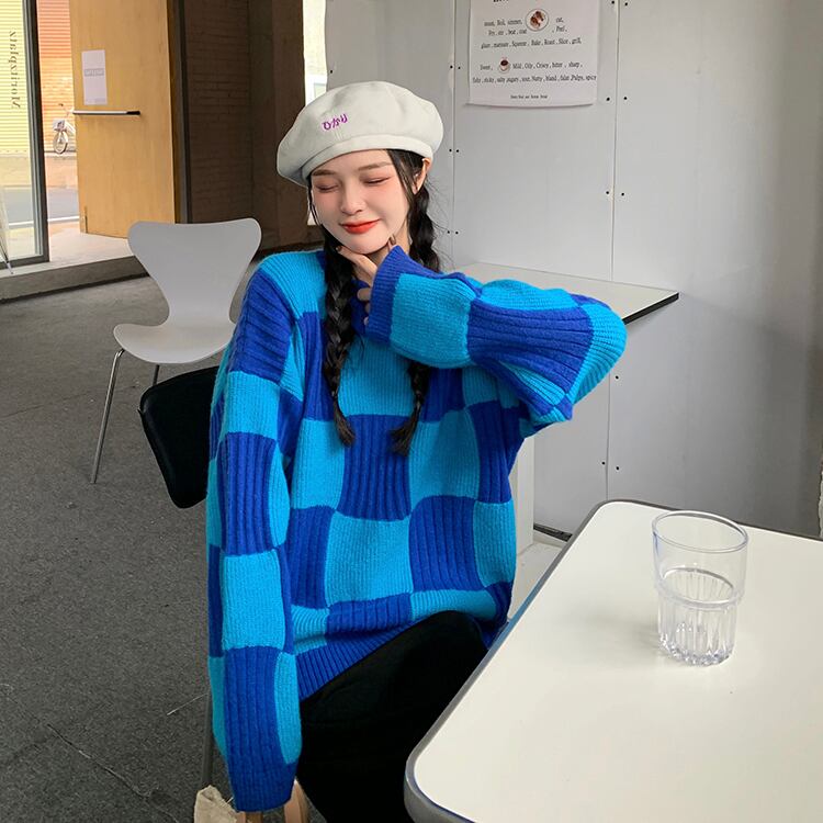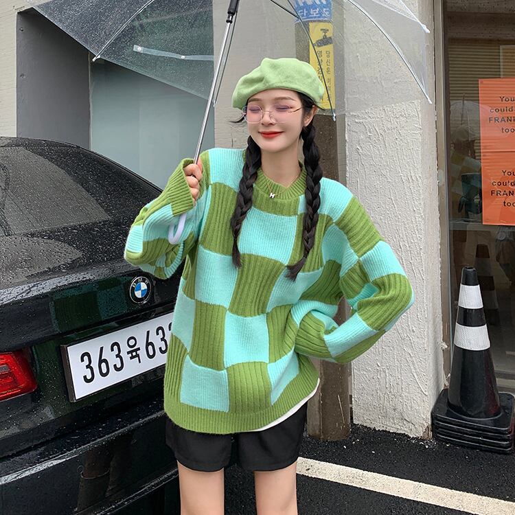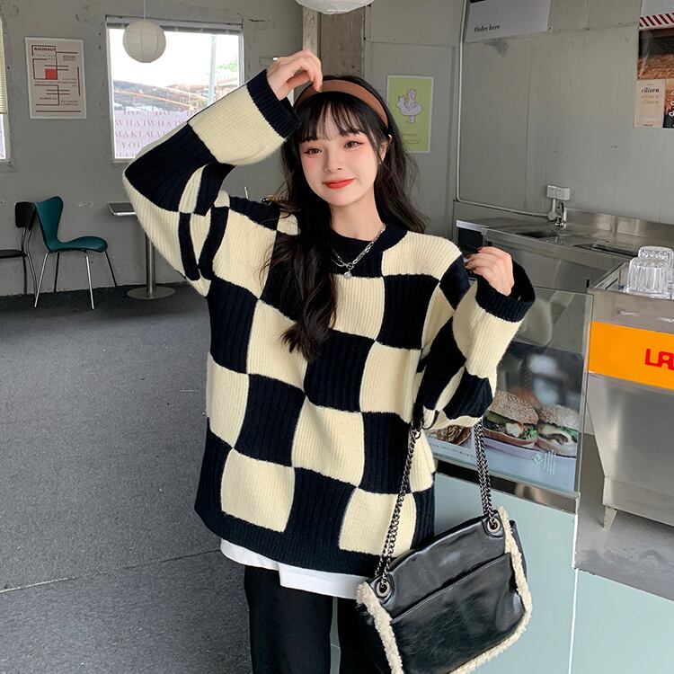 【送料無料】レディース ニット デザインニット セーター チェックパターン 長袖 リブ 市松模様 オーバーサイズ ゆったり 3カラー 大人可愛い ママコーデ ママファッション 韓国 オルチャンファッション 人気 トレンド 新作 20代 30代 40代 きれいめ レトロ シンプル 定番 スタイリッシュ お出かけ デート おしゃれ 通勤 通学 オフィス OL デイリー 普段着 ラフ カジュアル フェミニン シック 体型カバー 着痩せ 着回し インスタ映え 秋 冬 CO1886