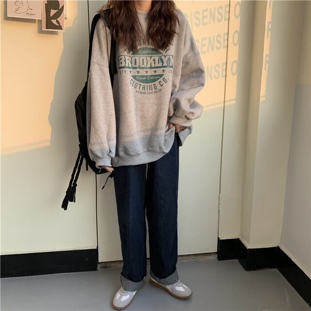 【送料無料】レディース オーバーサイズ スウェット プルオーバートレーナー トップス 長袖 ドロップショルダー メンズライク ボーイッシュ ゆったり 大きめ ロゴ プリント クルーネック 丸首 ラウンドネック 大人可愛い ママコーデ ママファッション 韓国 オルチャンファッション 人気 トレンド 新作 20代 30代 40代 レトロ シンプル 定番 お出かけ デート おしゃれ 通勤 通学 デイリー 普段着 ラフ カジュアル 体型カバー 着痩せ 着回し インスタ映え 秋 冬 春 CO1899