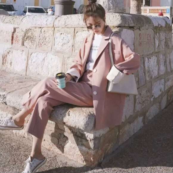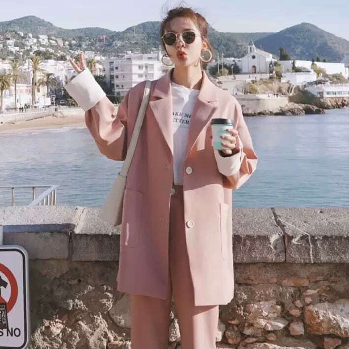 【送料無料】レディース セットアップ ファッショナブル ニュアンス 淡い ピンク ブラック スーツジャケット タックパンツ スタイルカラー オーバー 大人可愛い ママコーデ ママファッション 韓国 オルチャンファッション 人気 トレンド 新作 20代 30代 40代 きれいめ レトロ シンプル 定番 スタイリッシュ お出かけ デート おしゃれ 通勤 通学 オフィス OL デイリー カジュアル フェミニン シック 体型カバー 着痩せ 着回し インスタ映え 秋 冬 春 CO1926