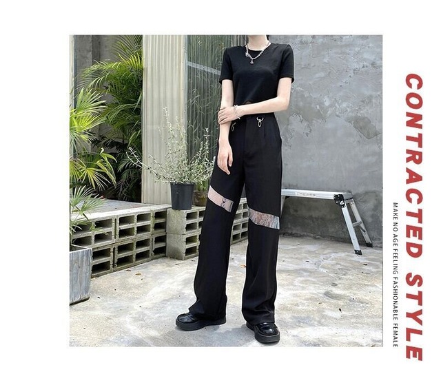 【送料無料】レディース パンツ レディース ボトムス ワイド フルレングス 個性的 チラ見せ ブラック レース シースルー 透け感 大人可愛い ママコーデ ママファッション 韓国 オルチャンファッション 人気 トレンド 新作 20代 30代 40代 きれいめ レトロ シンプル 定番 スタイリッシュ お出かけ デート おしゃれ 通勤 通学 オフィス OL デイリー カジュアル フェミニン シック 体型カバー 着痩せ 着回し インスタ映え 秋 冬 春 夏 CO1928