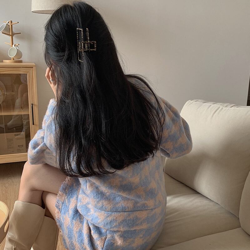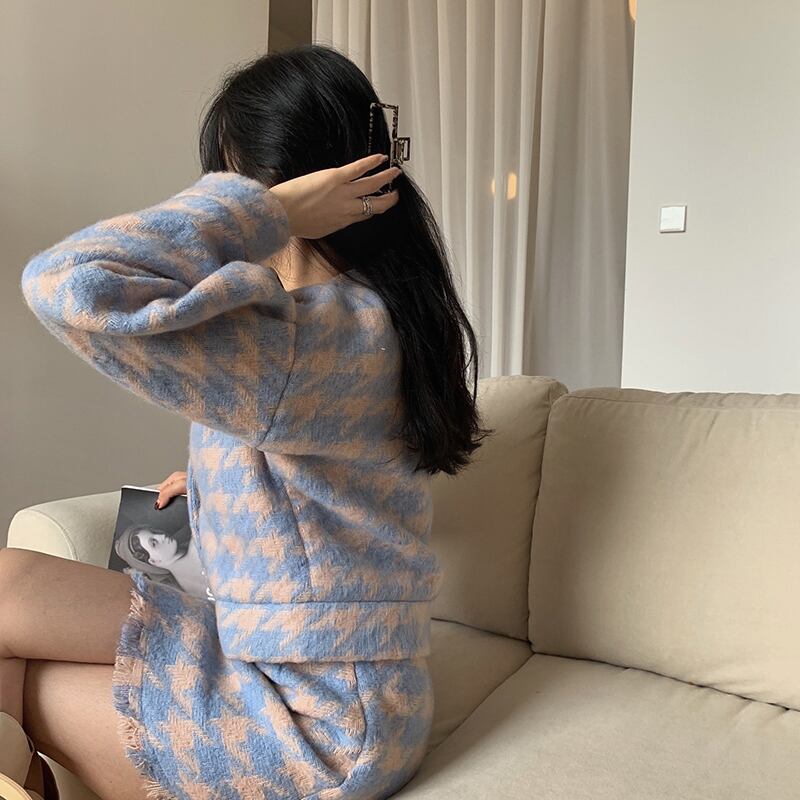 淡いカラーの千鳥格子柄でレトロガーリーなスタイルに◎