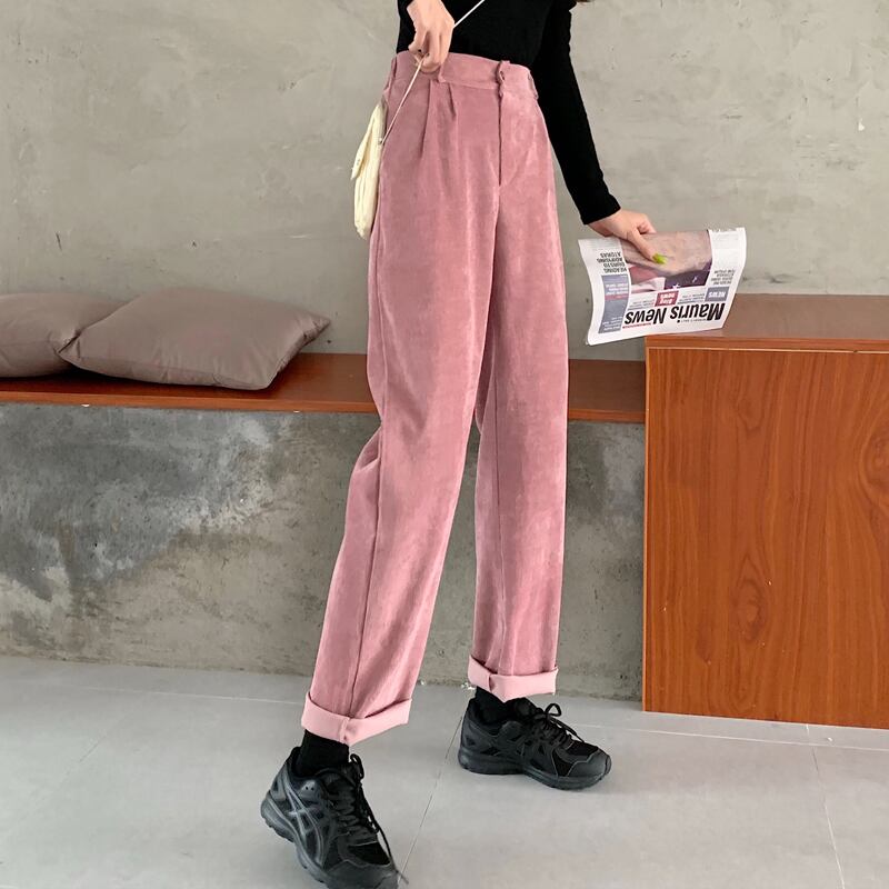 【送料無料】レディース パンツ コーデュロイ ルーズ ボトムス ズボン ストレート ワイド ハイウエスト 2カラー ロールアップ カラーパンツ ワイドパンツ 大人可愛い ママコーデ ママファッション 韓国 オルチャンファッション 人気 トレンド 新作 20代 30代 40代 きれいめ レトロ シンプル 定番 スタイリッシュ お出かけ デート おしゃれ 通勤 通学 オフィス OL デイリー カジュアル フェミニン シック 体型カバー 着痩せ 着回し インスタ映え 秋 冬 CO1942