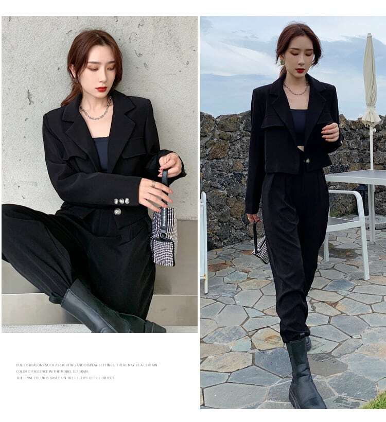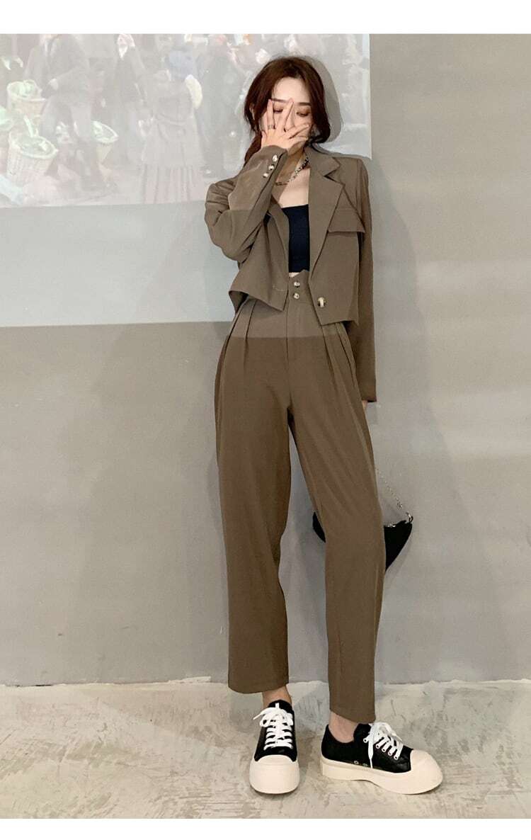 【送料無料】レディース セットアップ スーツ パンツ 上下セット 個性的 2点セット ジャケット ショート丈 ハイウエスト ストレートパンツ マニッシュ クール 存在感 長袖 無地 大人可愛い ママコーデ ママファッション 韓国 オルチャンファッション 人気 トレンド 新作 20代 30代 40代 きれいめ レトロ シンプル 定番 スタイリッシュ お出かけ デート おしゃれ 通勤 通学 オフィス OL デイリー カジュアル シック 体型カバー 着痩せ 着回し インスタ映え 秋 冬 春 CO1962