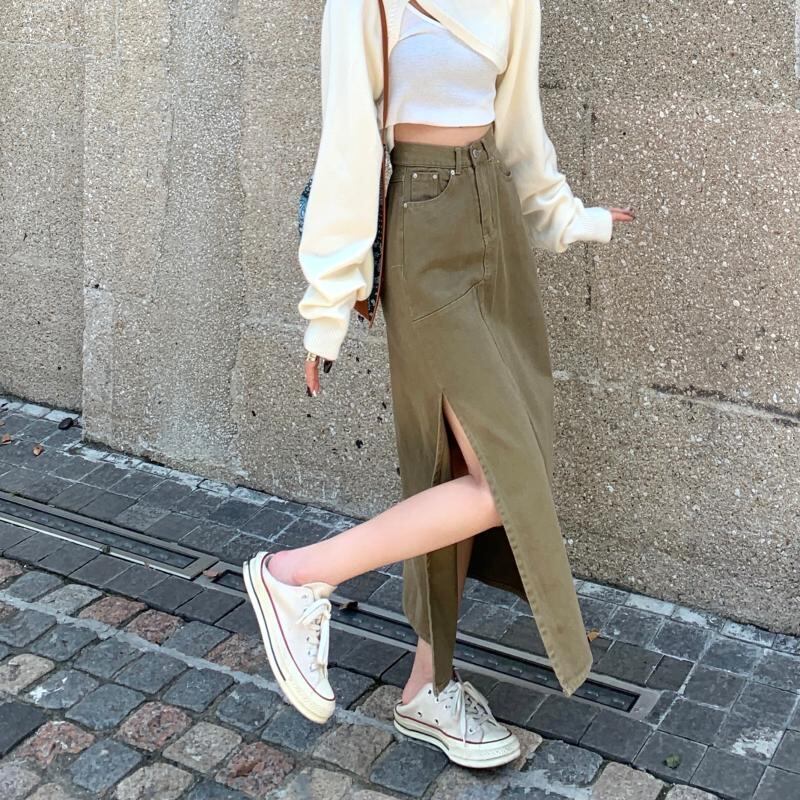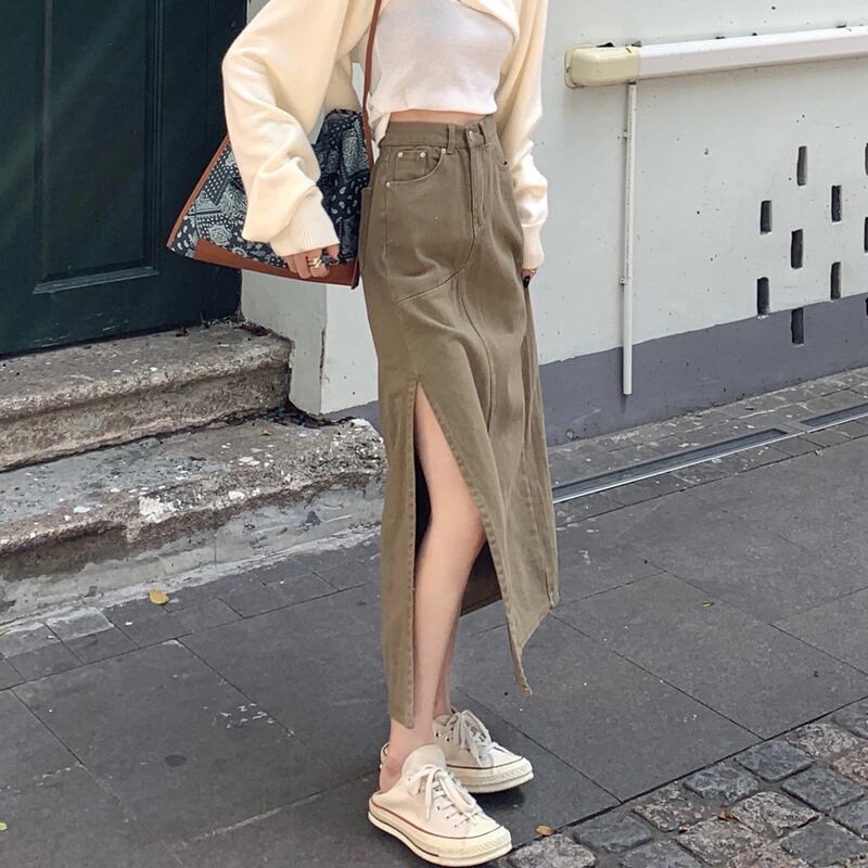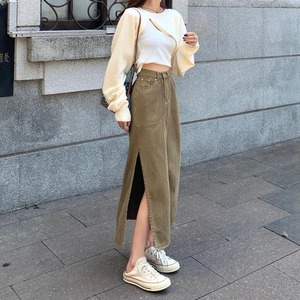【送料無料】レディース ロング スカート デニム ミドル丈 タイト ハイウエスト サイドスリット セクシー 無地 深スリット 細身 ペンシル 大人可愛い ママコーデ ママファッション 韓国 オルチャンファッション 人気 トレンド 新作 20代 30代 40代 きれいめ レトロ シンプル 定番 スタイリッシュ お出かけ デート おしゃれ 通勤 通学 オフィス OL デイリー カジュアル フェミニン シック 体型カバー 着痩せ 着回し インスタ映え 秋 冬 春 CO1963
