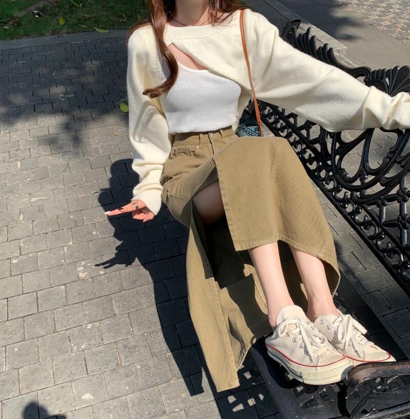 深スリットが目をひくスカート