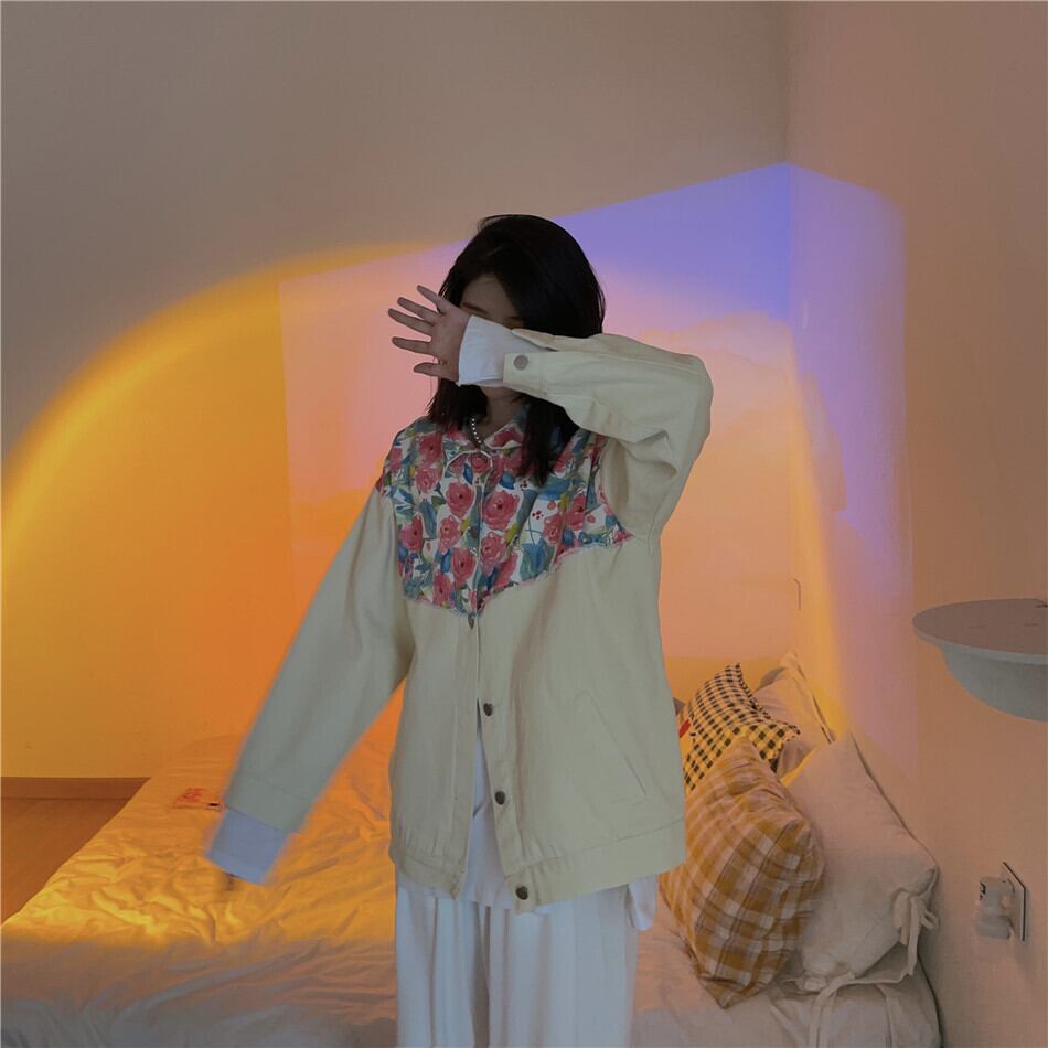 【送料無料】レディース ジャケット ブルゾン 花柄 切り替え ショート丈 デニム 大きいサイズ 長袖 オーバーサイズ 大人可愛い ママコーデ ママファッション 韓国 オルチャンファッション 人気 トレンド 新作 20代 30代 40代 きれいめ レトロ シンプル 定番 スタイリッシュ お出かけ デート おしゃれ 通勤 通学 オフィス OL デイリー カジュアル フェミニン 体型カバー 着痩せ 着回し インスタ映え 秋 春 CO1965