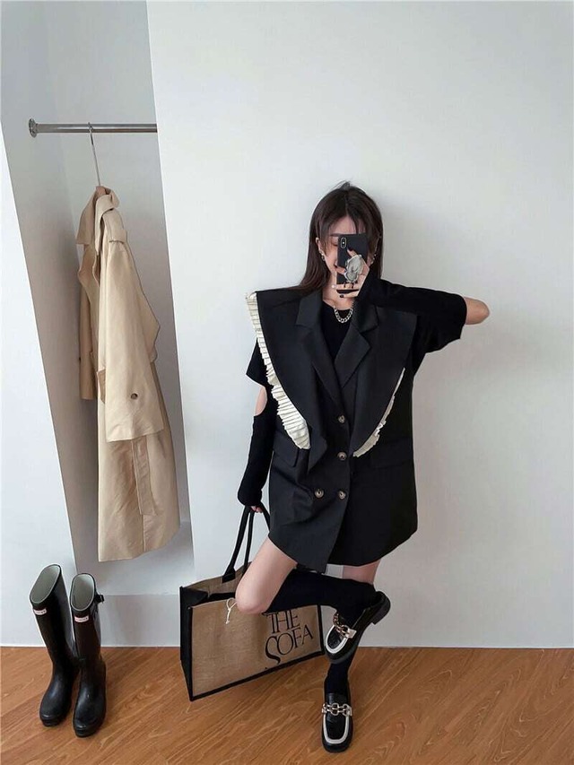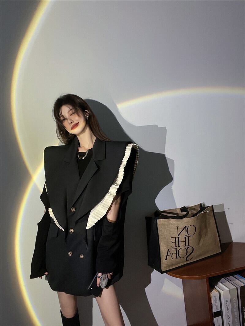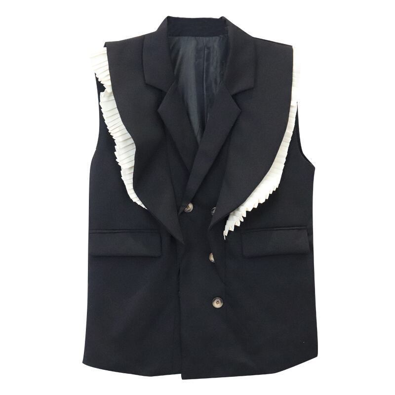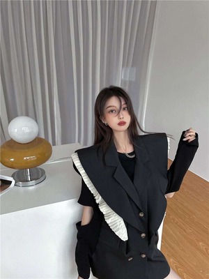 【送料無料】レディース ベスト ジレ スーツベスト フリル 個性的 ミドル丈 ブラック 袖なし バイカラー こなれ感 大人可愛い ママコーデ ママファッション 韓国 オルチャンファッション 人気 トレンド 新作 20代 30代 40代 きれいめ レトロ シンプル 定番 スタイリッシュ お出かけ デート おしゃれ 通勤 通学 オフィス OL デイリー カジュアル フェミニン シック 体型カバー 着痩せ 着回し インスタ映え 秋 春 CO1973