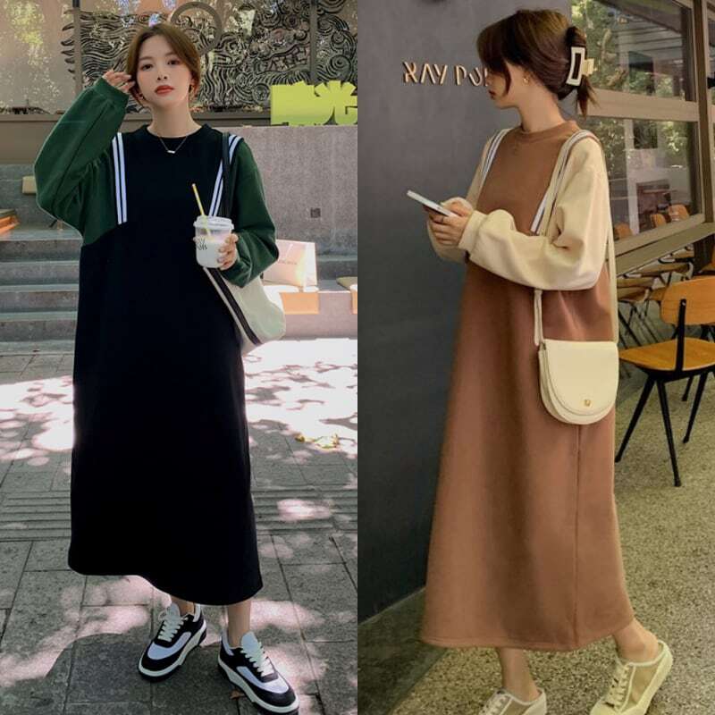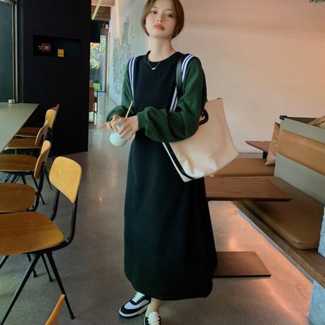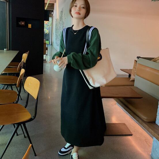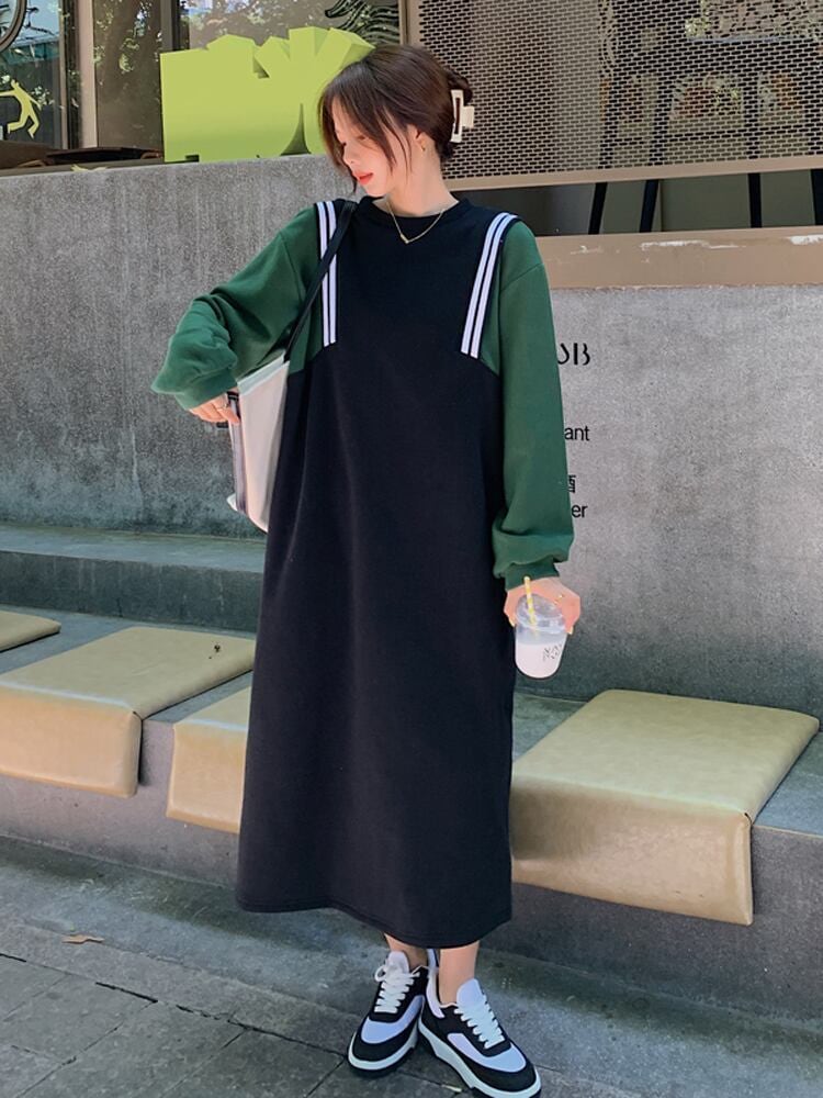 【送料無料】レディース 2カラー ワンピース ロング丈 マキシ丈 バイカラー 長袖 ラウンドネック Aライン 大人可愛い ママコーデ ママファッション 韓国 オルチャンファッション 人気 トレンド 新作 20代 30代 40代 きれいめ レトロ シンプル 定番 スタイリッシュ お出かけ デート おしゃれ 通学 デイリー カジュアル フェミニン シック 体型カバー 着痩せ 着回し インスタ映え 秋 春 CO2210