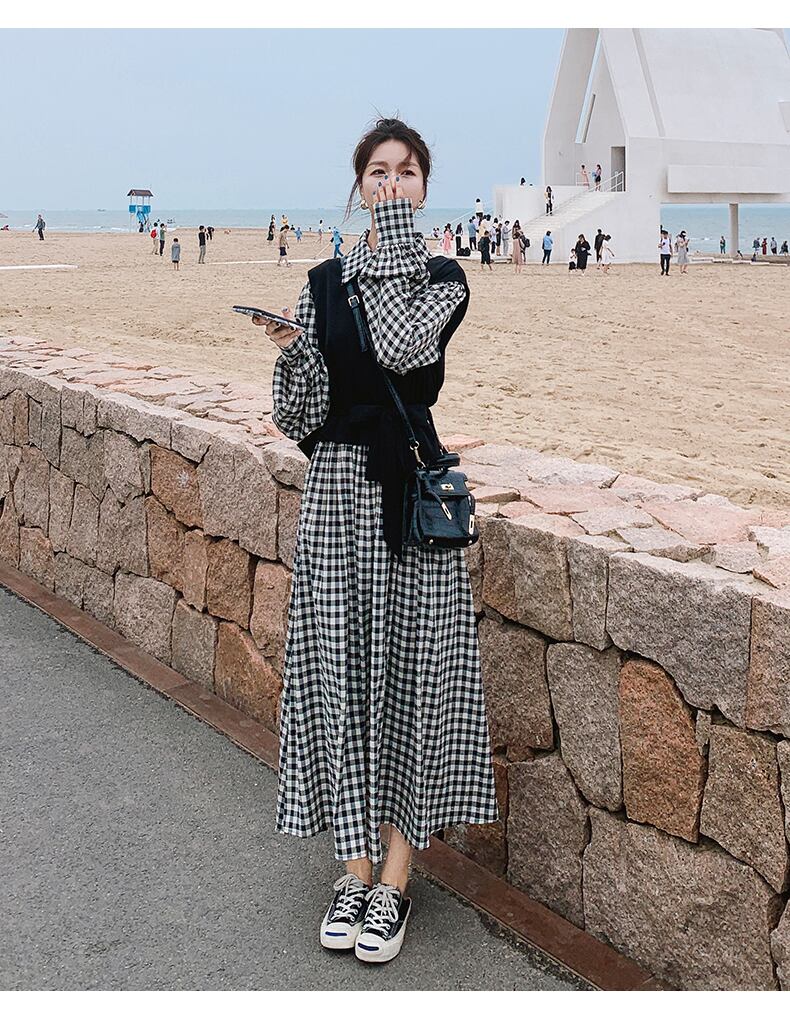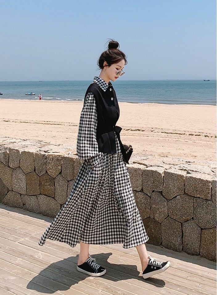 【送料無料】レディース セットアップ ワンピース ベスト 2点セット ギンガムチェック ツーピース ロング丈 マキシ丈 襟付き ボタン シングルブレスト 長袖 大人可愛い ママコーデ ママファッション 韓国 オルチャンファッション 人気 トレンド 新作 20代 30代 40代 きれいめ レトロ シンプル 定番 スタイリッシュ お出かけ デート おしゃれ 通学 デイリー カジュアル フェミニン シック 体型カバー 着痩せ 着回し インスタ映え 秋 春 CO2212