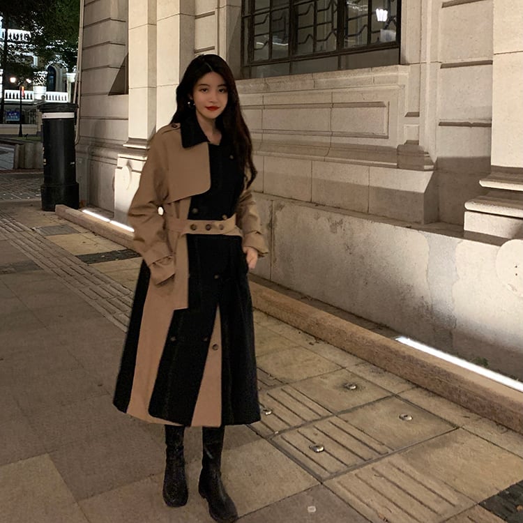 【送料無料】レディース 2カラー コート ロング トレンチコート バイカラー アシンメトリー ボタン ダブルブレスト ウエストベルト ポケット 大人可愛い ママコーデ ママファッション 韓国 オルチャンファッション 人気 トレンド 新作 20代 30代 40代 きれいめ レトロ シンプル 定番 スタイリッシュ お出かけ デート おしゃれ 通学 デイリー カジュアル フェミニン シック 体型カバー 着痩せ 着回し インスタ映え 秋 冬 春 CO2213