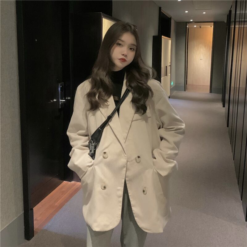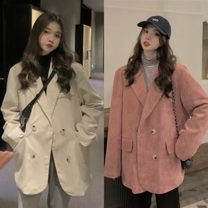 【送料無料】レディース 2カラー ジャケット 襟付き ボタン ダブルブレスト ポケット ミディアム丈 長袖 オーバーサイズ ルーズ 大人可愛い ママコーデ ママファッション 韓国 オルチャンファッション 人気 トレンド 新作 20代 30代 40代 きれいめ レトロ シンプル 定番 スタイリッシュ お出かけ デート おしゃれ 通学 デイリー カジュアル フェミニン シック 体型カバー 着痩せ 着回し インスタ映え 秋 冬 CO2216