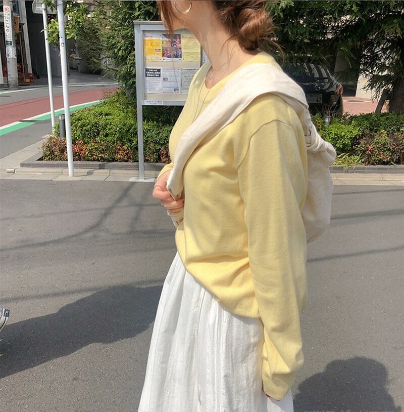 ♡しっとりやわらかラウンドネックニットトップス ♡
