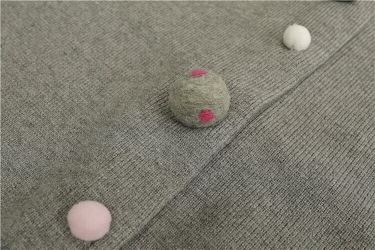 丸いポンポンボタンが印象的な着映えカーディガン。